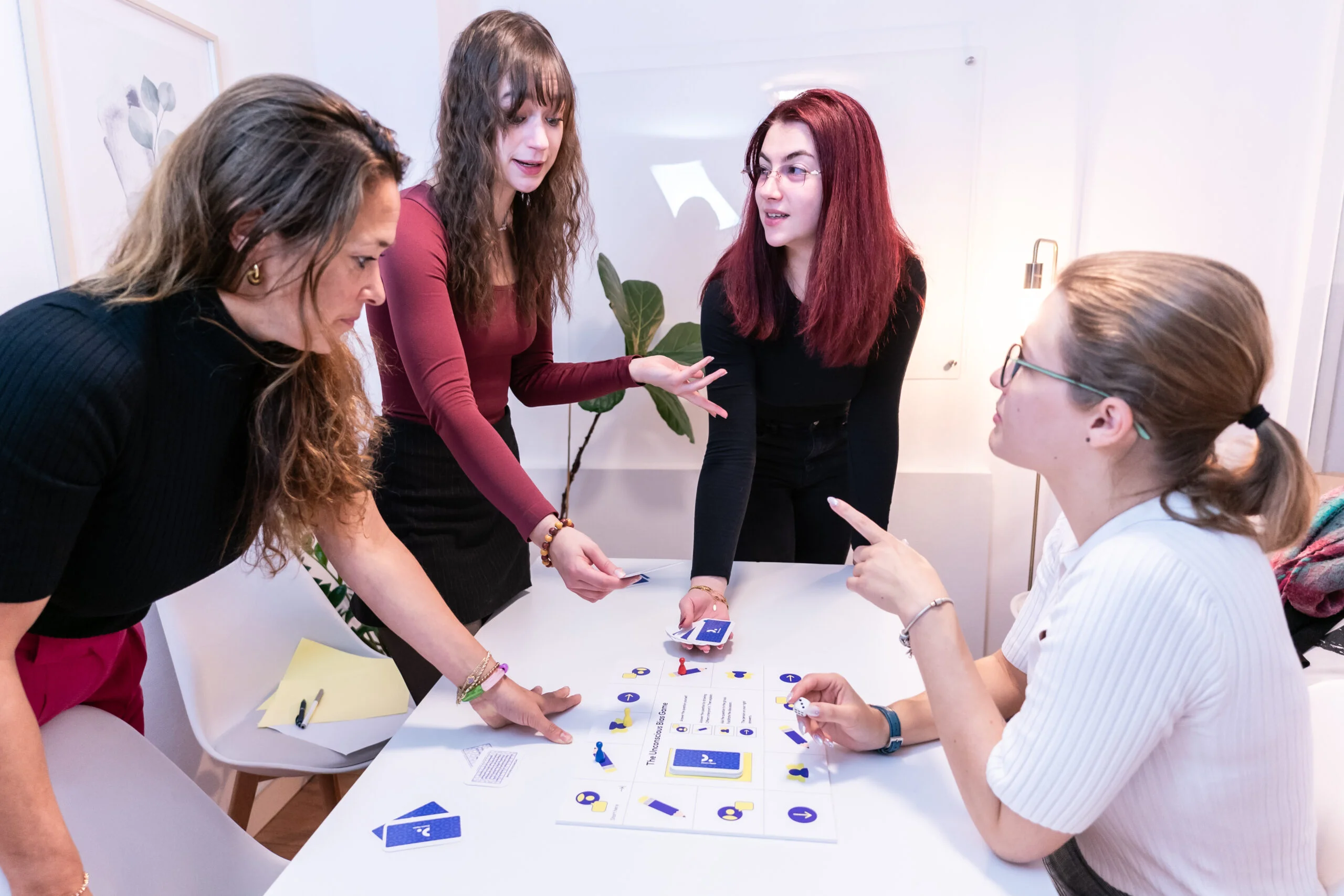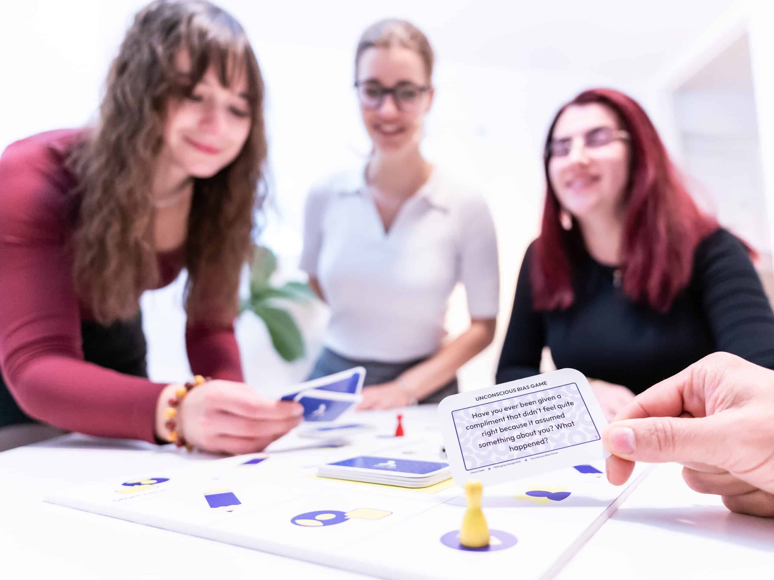 As players move across the board, questions and insights guide conversations about bias, connecting abstract concepts to the real dynamics and relationships in their own workplace.
